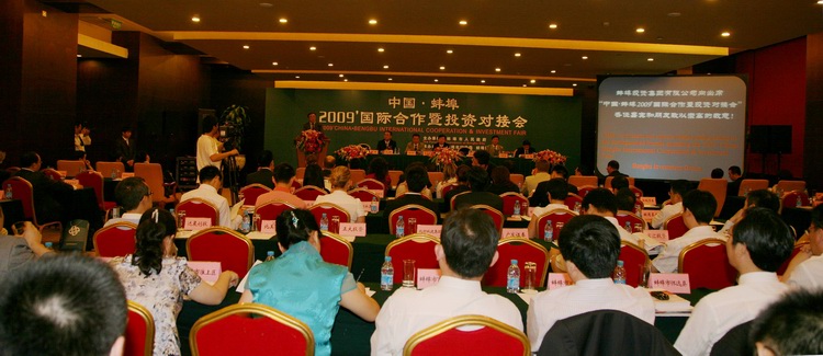 2009年6月29日,“中國·蚌埠2009’國際合作暨投資對(duì)接會(huì)”在北京隆重舉行。會(huì)議的主要目的是使世界了解安徽蚌埠,促進(jìn)安徽蚌埠在更寬領(lǐng)域、更高層次上尋求國際合作,實(shí)現(xiàn)共同發(fā)展。