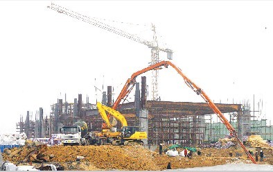 本報訊 昨天下午,高鐵蚌埠站工人們正冒雨進(jìn)行施工。目前,高鐵蚌埠站地下通道部分主體完成,進(jìn)入地面一層施工階段。