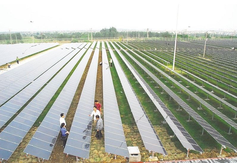 我市第一座2兆瓦非晶硅太陽能示范電站日前通過涉網(wǎng)部分驗收,將于國慶期間并入蚌埠地區(qū)10千伏系統(tǒng)送電。該電站由蚌埠中源光伏電力有限公司投資建設(shè),坐落于曹山東側(cè),占地160畝,鋪設(shè)了46000片弱光效應(yīng)好的非晶硅太陽能電池板,經(jīng)過太陽能的收集,經(jīng)逆變器變?yōu)榻涣麟?,?臺1250千伏安的調(diào)壓變壓器升壓后并入蚌埠電網(wǎng)。據(jù)悉,兆瓦級的太陽能電站在全省僅此一座。