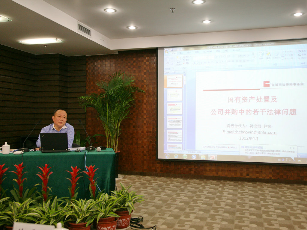 此次培訓(xùn)由中國國際經(jīng)濟(jì)貿(mào)易仲裁委員會仲裁員、北京市律師協(xié)會公司法專業(yè)委員會主任賀寶銀主講,賀主任在企業(yè)改制、上市、并購、重組、投資基金以及國際經(jīng)濟(jì)貿(mào)易仲裁等領(lǐng)域有著深厚的理論基礎(chǔ)和豐富的實(shí)踐經(jīng)驗(yàn)。賀寶銀主任從國有資產(chǎn)處置、公司并購兩方面的若干法律問題,結(jié)合大量案例,詳盡的分析了國有資產(chǎn)處置的程序、公司并購及流程。賀主任講課內(nèi)容豐富、指導(dǎo)性強(qiáng),對于公司進(jìn)一步強(qiáng)化資產(chǎn)管理具有指導(dǎo)意義和借鑒作用。課間參會人員與賀主任進(jìn)行了良好的互動。