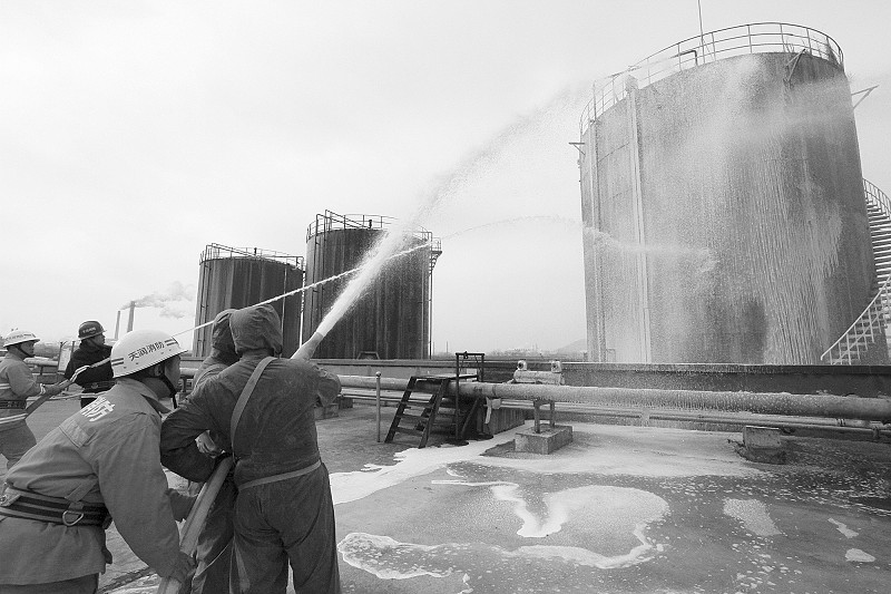 800立方米丙烯腈儲罐突發(fā)“泄漏”,一旦發(fā)生環(huán)境污染事故,將波及周邊大片生活區(qū),情況十分危急……昨天上午9時許,市環(huán)保局主辦的環(huán)境突發(fā)事件應急演練在安徽天潤化學工業(yè)股份有限公司儲罐區(qū)舉行?!翱?!有人中毒倒地,罐體隨時有起火可能,請搶險救援小組、醫(yī)療救護小組、消防滅火小組支援!”伴隨著急促而有序的通話,企業(yè)負責人命令立即啟動專項環(huán)境應急預案。“事故”現(xiàn)場,兩名穿戴防護服、身背呼吸機的救援隊員沖鋒在前,成功關閉了發(fā)生泄漏的3號罐的外排閥門,并對損壞罐體進行搶修,防止更多化學氣體外泄;現(xiàn)場醫(yī)療人員抬起擔架沖進儲罐區(qū),抬送“傷員”到安全地帶,組織員工向上風口有序撤離轉移;全副武裝的消防隊員手持水槍,噴涌而出的泡沫將3號罐體團團包裹,罐內(nèi)化學物質(zhì)得到降溫、稀釋。