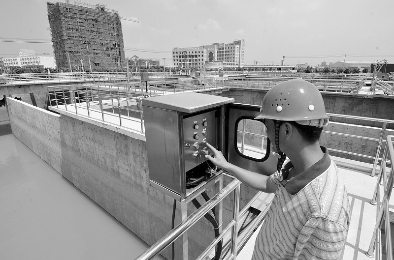 7月 18日,城南污水處理廠項(xiàng)目建設(shè)現(xiàn)場(chǎng),施工人員正在進(jìn)行設(shè)備巡查。據(jù)了解,該項(xiàng) 目 總 投 資9970萬(wàn)元,設(shè)計(jì)日污水處理能力2.5萬(wàn)噸,目前已具備通水試運(yùn)行條件。