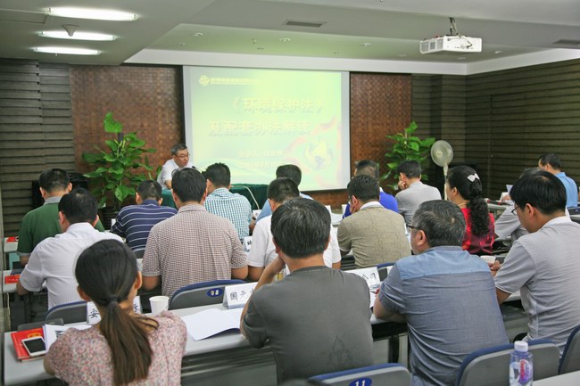 培訓中,沈世偉從當前的環(huán)境熱點事件入題,介紹了新環(huán)保法出臺的背景,詳細解讀了新環(huán)保法的四大亮點和關(guān)鍵條款,重點闡釋了新《環(huán)保法》與1989年頒布實施的《環(huán)保法》在創(chuàng)新環(huán)境理念、創(chuàng)新多元共治、強化政府責任、明確企業(yè)義務、增加環(huán)保授權(quán)、加強信息公開、嚴懲違法企業(yè)等方面的變化。他結(jié)合案例全面透徹地詮釋了新環(huán)境保護法法規(guī)條款,讓大家對新《環(huán)保法》及配套辦法有了全面的認識和了解,同時也增強了大家的環(huán)保觀念和意識。