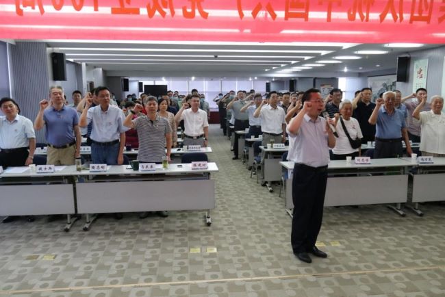 在鮮紅的黨旗下,黨員同志們莊嚴(yán)地舉起右手,重溫入黨誓詞,這是初心使命的再宣示,是接續(xù)奮斗的再出發(fā)。在激昂的樂(lè)曲中,集團(tuán)黨委班子成員為5名老黨員代表發(fā)放“光榮在黨50年”紀(jì)念章、佩戴紅花。沉甸甸的紀(jì)念章不僅僅是對(duì)老黨員的最高禮贊,更是激發(fā)集團(tuán)廣大黨員干部續(xù)寫(xiě)時(shí)代新篇章的強(qiáng)大動(dòng)力。隨后,陳建功為全體與會(huì)人員作了黨史專題黨課。